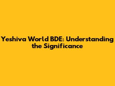 Yeshiva World BDE: Understanding The Significance